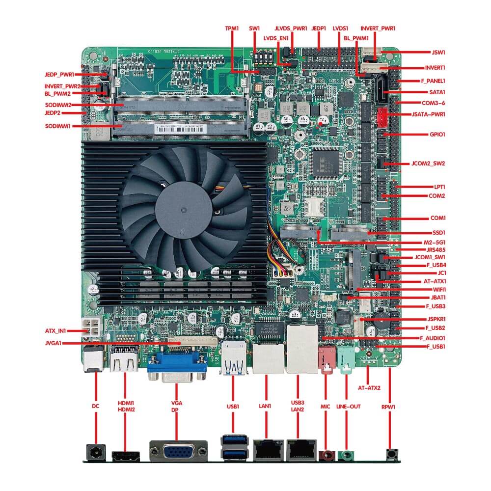 ZC-ITX120U Thin Mini Itx Motherboard Onboard Intel 12th Gen Series Processor ,2*LAN Ports,6*COM,VGA+HDMI+LVDS Display